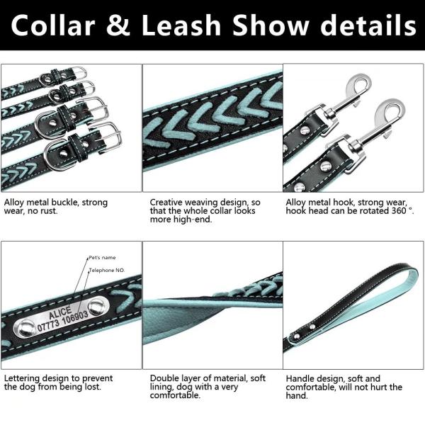 Leather Custom Collar,Braided Leather Engraved Dog Collars with Personalized Nameplate for Small Medium Large Dogs